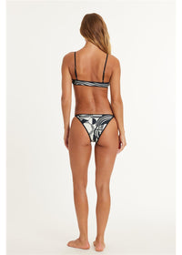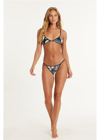 The Geo Hot Hot features a vibrant print with a binded finish, offering minimal coverage for a bold and flattering look.