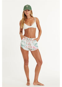 Woven shorts with drawcord elastic waistband and on seam pockets.