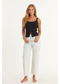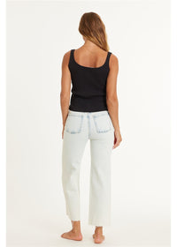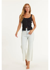 Elevate your style with these high-waisted flare crop jeans featuring a raw hem.