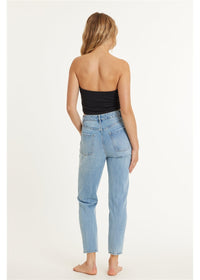 Elevate your style with our mid rise, 5 pocket, button fly jeans featuring a sleek tapered leg.