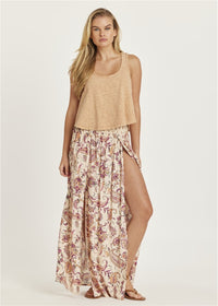 This knit tank is bound to be your new go-to with its self-binding accentuating the armholes and neckline. Its exposed center back seam and shirttail hem add a touch of uniqueness.
