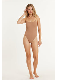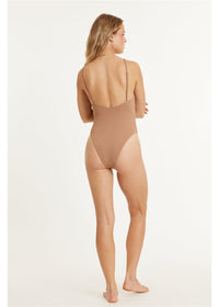 The Wavy Beach Bombshell one-piece swimsuit offers flattering high hip coverage for a confident and chic beach look.